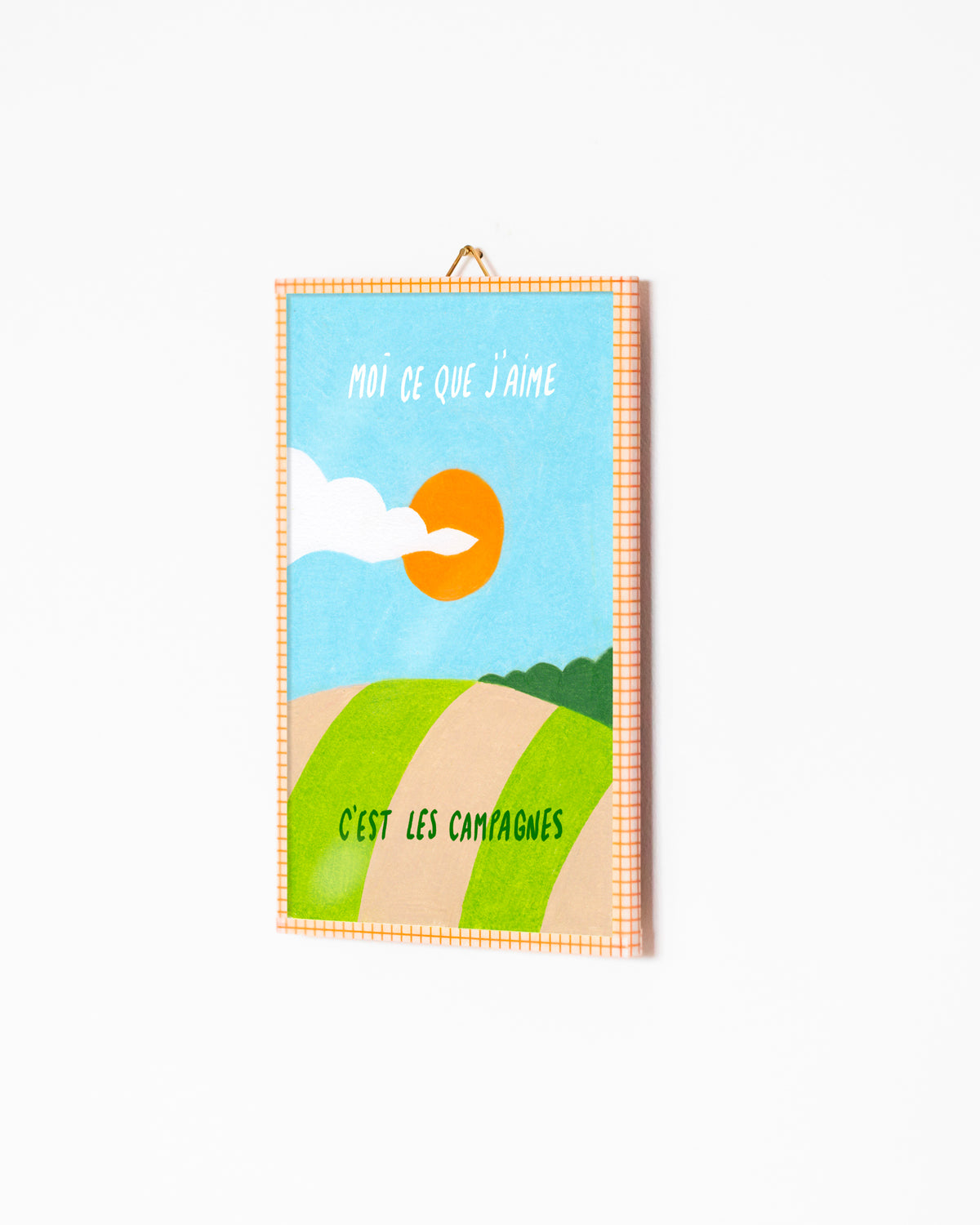 Elle est encadrée et façonnée à la main pour être suspendue au mur ou posée comme un objet parmi votre décoration.