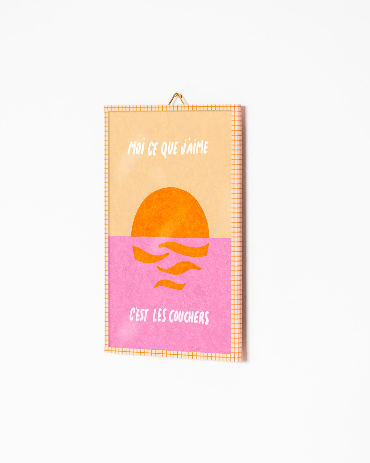 Elle est encadrée et façonnée à la main pour être suspendue au mur ou posée comme un objet parmi votre décoration.