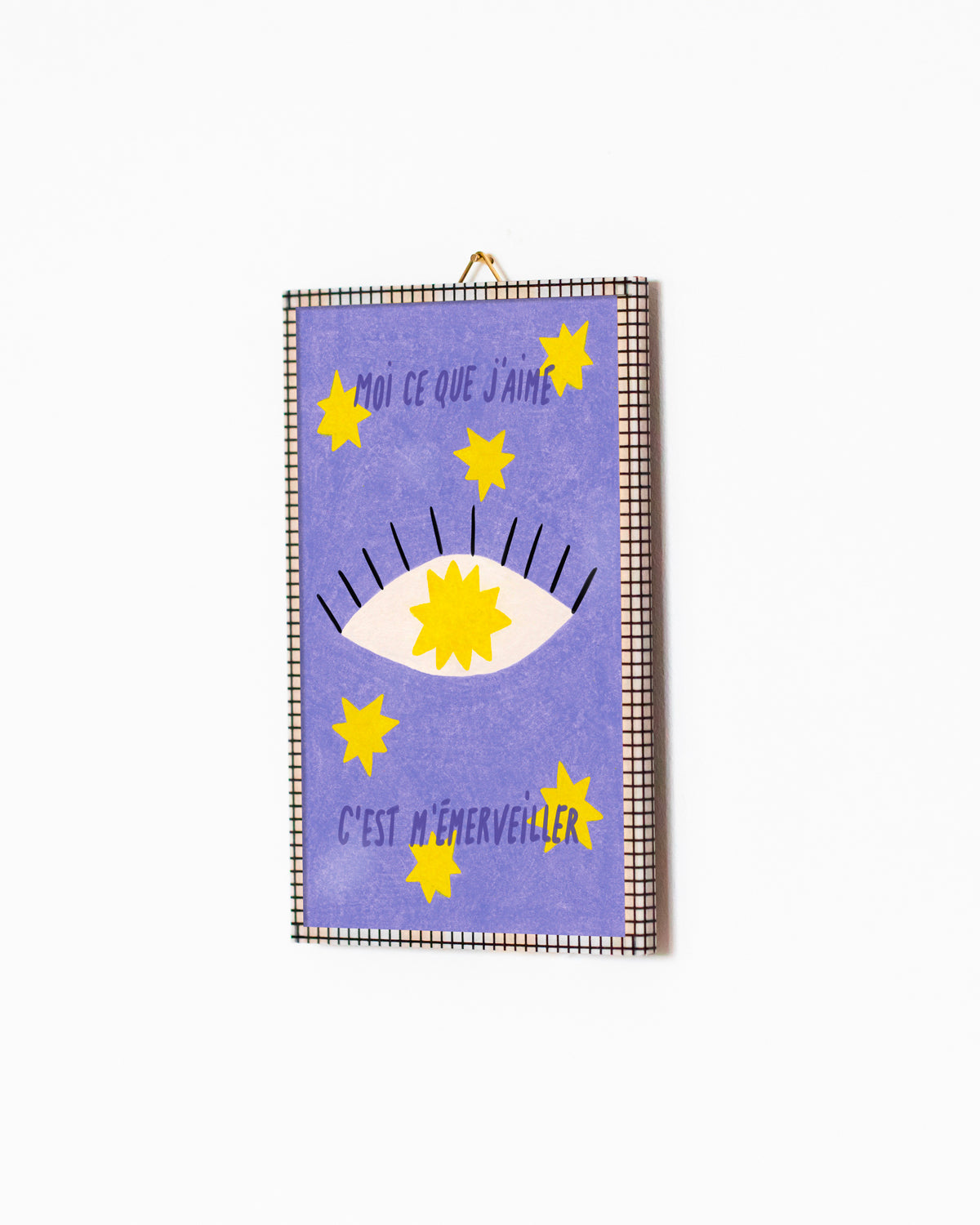 Elle est encadrée et façonnée à la main pour être suspendue au mur ou posée comme un objet parmi votre décoration.