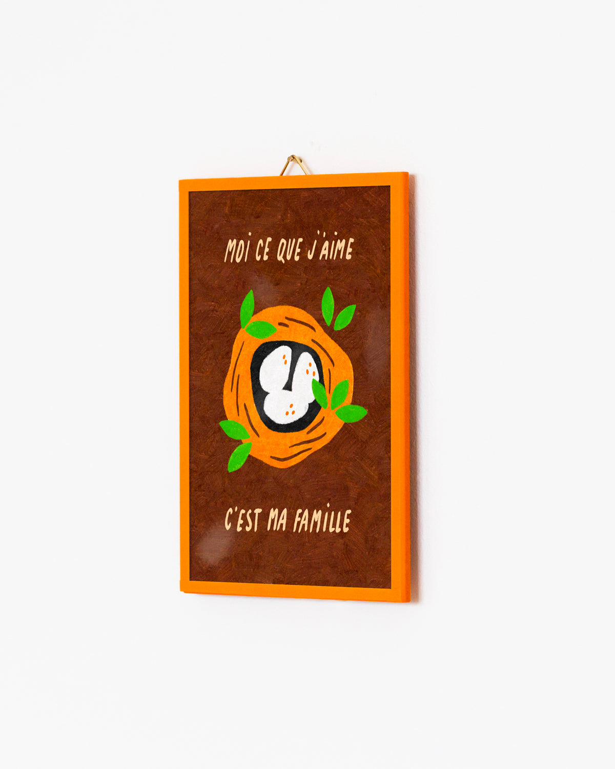 Elle est encadrée et façonnée à la main pour être suspendue au mur ou posée comme un objet parmi votre décoration.