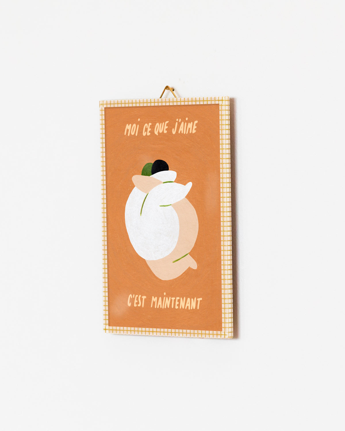 Elle est encadrée et façonnée à la main pour être suspendue au mur ou posée comme un objet parmi votre décoration.