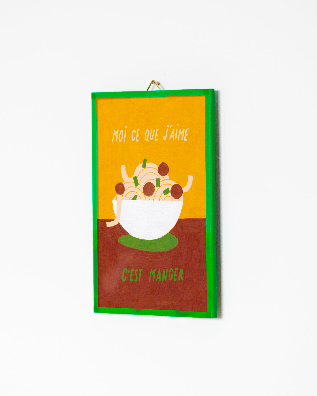 Elle est encadrée et façonnée à la main pour être suspendue au mur ou posée comme un objet parmi votre décoration.