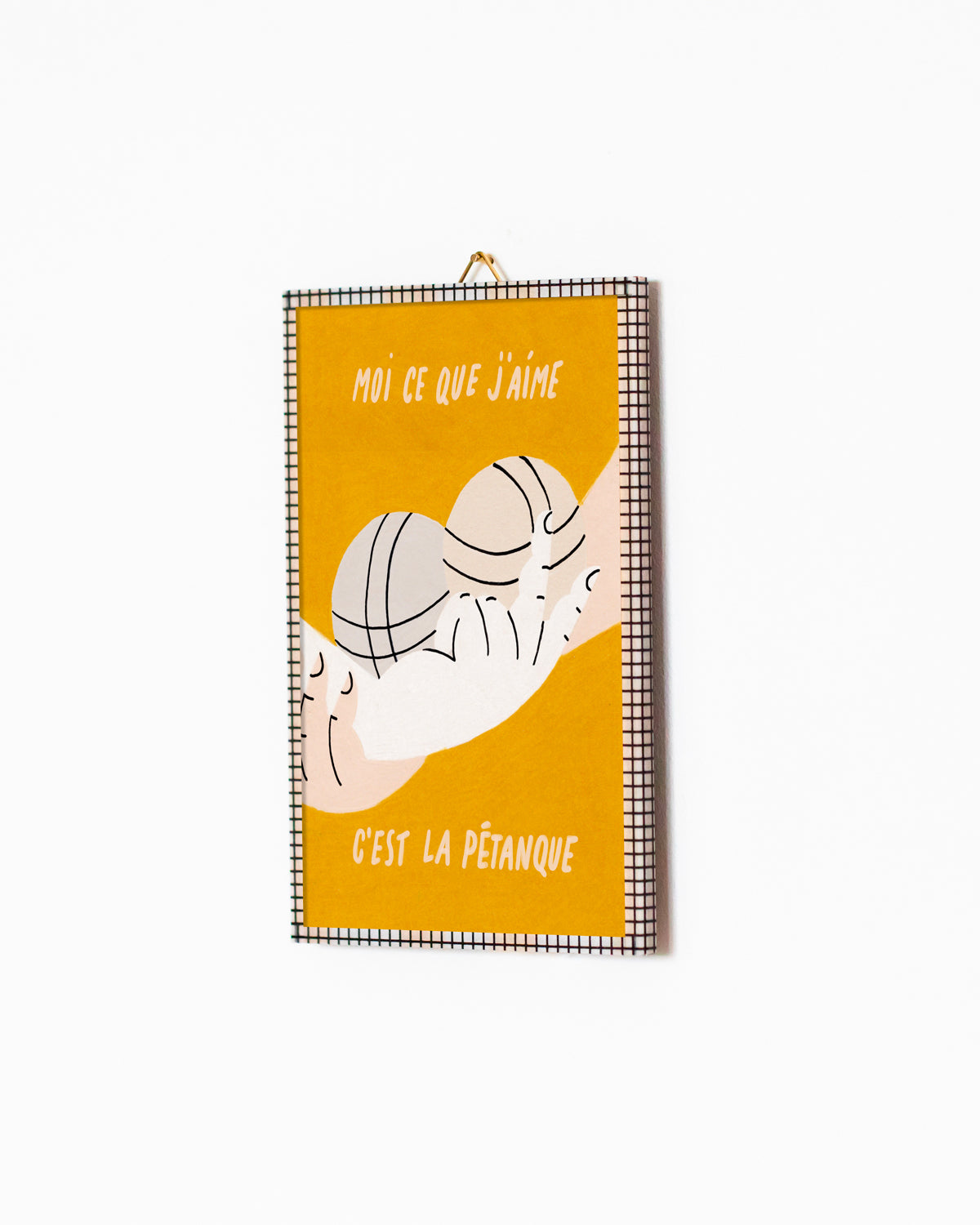 Elle est encadrée et façonnée à la main pour être suspendue au mur ou posée comme un objet parmi votre décoration.