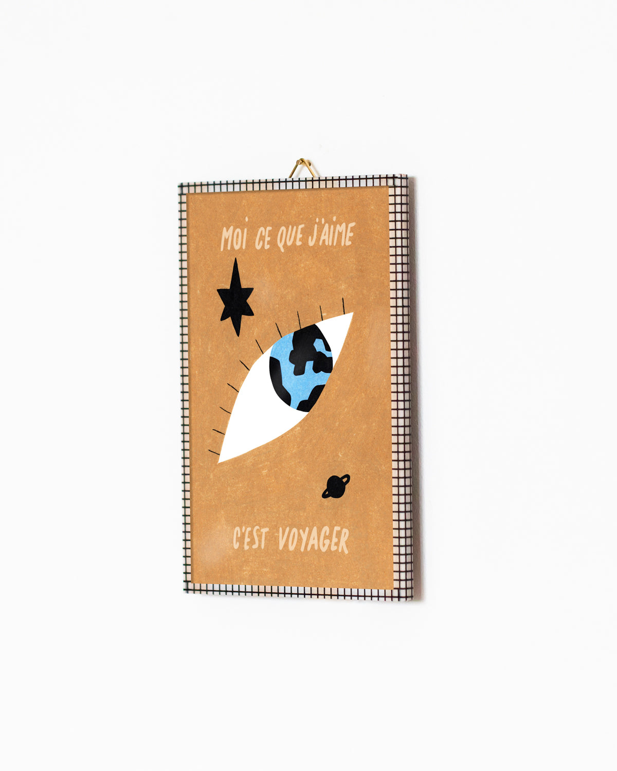 Elle est encadrée et façonnée à la main pour être suspendue au mur ou posée comme un objet parmi votre décoration.